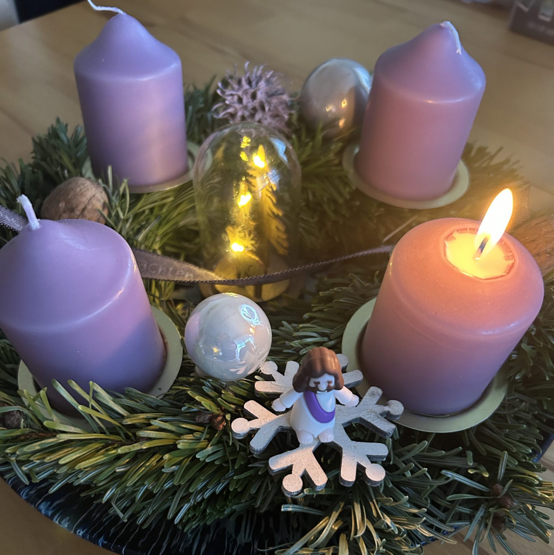 Jesus am Adventskranz zum 1. Advent in Schönbrunn.